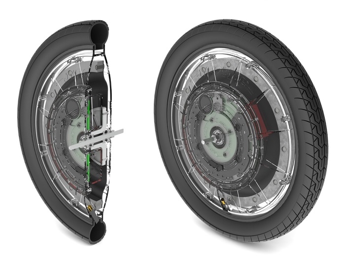 Как можно уравновесить то, что само по себе не уравновешено? Добавить гироскоп! С точки зрения механики секрет волшебного велосипеда прост. В переднем колесе прячется маховик, раскручиваемый электромотором до максимальной скорости 1550 оборотов в минуту. Именно он и позволяет двухколесному транспортному средству во что бы то ни стало сохранять вертикальное положение. Когда велосипед отклоняется, гироскоп заставляет руль вернуться в нулевую позицию.