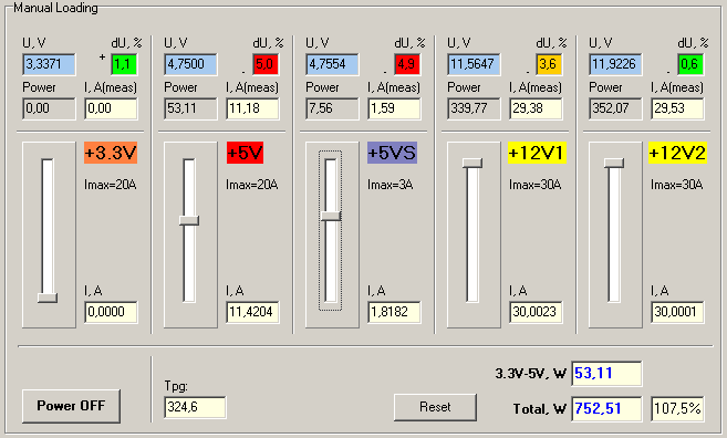 ⇡#Внутреннее устройствоКомпоненты БП охлаждаются вентилятором типоразмера 120 мм. Производитель — Yate Loon, модель — D12SH-12 (подшипник скольжения, максимальная скорость вращения крыльчатки — 2200 об/мин). Antec VP700P: подключение кулера к плате выполняется двумя проводами Плата (произведенная FSP) имеет весьма «олдскульную» схемотехнику, кое-где заметны следы экономии на компонентах, но без явной халтуры. Как и снаружи, внутри у Antec VP700P присутствует все необходимое. Качество сборки и пайки — без сучка без задоринки. Antec VP700P: в схеме активного PFC используется конденсатор производства СapXon На входе использован двухзвенный фильтр электромагнитных помех простейшей, но вполне достаточной конструкции. Имеются предохранитель и варистор, который защищает устройство от кратковременных всплесков напряжения. Выпрямитель собран из отдельных диодов номиналом 3 А, что в совокупности дает лимит мощности на входе в 1380 Вт при напряжении сети 230 В. Плохо только то, что в отличие от интегрированных выпрямителей, которые используются в более дорогих БП, диоды не оснащены радиатором. Еще раз напомним, что Antec VP700P может работать только в сетях с напряжением 200-240 В. Поддержку 110 В убрали в целях экономии. Antec VP700P: первая пара конденсаторов CY входного фильтра распаяна на контактах разъема питания Преобразователь напряжения построен по распространенной прямоходовой топологии с двумя ключевыми транзисторами (two-switch forward). Трансформатор имеет две вторичные обмотки для шин 12 и 5 В — в отличие от БП с более современным устройством, которые используют единственную вторичную обмотку в сочетании с преобразователями DC-DC для вывода напряжений 5 и 3,3 В. Напряжение 3,3 В взято с той же обмотки, что и 5 В, посредством схемы с насыщаемым дросселем (MagAmp). Выпрямители в трех шинах используют парные сборки диодов Шоттки. Синхронные выпрямители на полевых транзисторах, имеющие более высокий КПД, остаются прерогативой более дорогих БП. Шина 12 В укомплектована четырьмя сборками в параллельном подключении, двум другим досталось по одной. Фильтр пульсаций на каждой шине представлен дросселем и единственным электролитическим конденсатором производства той же CapXon емкостью 1000 мкФ. Вот тут Antec очень поскупилась: в более дорогих моделях используются по меньшей мере вдвое более емкие конденсаторы, как правило — по несколько штук на шину. Феномен двух линий 12 В, которые заявлены в спецификациях блока, сводится к тому, что пучок проводов для питания CPU имеет фильтр, отдельный от остальных. Кроме того, возможно, что вторая шина заведена на один из четырех каналов микросхемы мониторинга Silicon Touch PS229, который обеспечивает защиту от критически пониженного/повышенного напряжения на шинах и превышения тока в нагрузке. Antec VP700P: конденсаторы CapXon емкостью 1000 мкФ в фильтрах вторичной цепи Шина 5 В не имеет дополнительного стабилизатора помимо дросселя групповой стабилизации, обслуживающего три основные шины вместе. Шина 3,3 В оснащена своим стабилизатором на насыщаемом дросселе. Стало быть, на идеальную стабилизацию напряжений при нагрузке, перекошенной в сторону той или иной шины, рассчитывать не приходится. Правда, и нагрузки такие встречаются, мягко скажем, нечасто. ⇡#Методика тестированияСо времени наших последних статей о блоках питания методика тестирования, применяемая в лаборатории 3DNews, изм