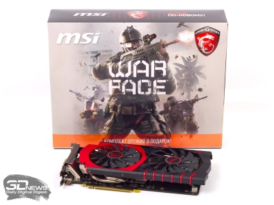 Итак, чем GeForce GTX 960 может похвастаться перед своими предшественниками? По сравнению с GTX 660, который основан на чипе GK106, GTX 960 прибавил в числе ядер CUDA, ROP и тактовых частотах. Если сравнить с GTX 760 (то есть с порезанным GK104), то GTX 960 не отступил только в числе ROP и тактовых частотах, а в остальном — шаг назад. Бросается в глаза 128-битная шина памяти, которой, казалось бы, уже давно пользуются видеоадаптеры классом ниже. По заверению разработчика, недостаток пропускной способности полностью компенсирует более крупный кеш L2 и усовершенствованный алгоритм компрессии цвета, который достигает коэффициента сжатия 8:1 без потери информации. Да и частота памяти увеличена до 7 ГГц. Но так ли эффективны эти меры, нам еще предстоит увидеть в тестах. Несомненно одно: GM206 — куда более компактный чип (2 940 млн транзисторов) по сравнению с GK104 (3 540 млн), что вкупе с оптимизациями архитектуры дает сниженный TDP (со 170 до 120 Вт) и экономию стоимости производства. Рекомендованная розничная цена GTX 960 составляет $199 (США, без налогов). Цена для России установлена на уровне 13 990 руб. GTX 960 предстоит конкурировать в первую очередь с Radeon R9 285. Кроме того, из продажи еще долго не исчезнет Radeon R9 280, да и GeForce GTX 760 теперь получит скидку после формальной отставки. Обе видеокарты обладают более широкой шиной памяти, а R9 280 — еще и увеличенным до 3 Гбайт объемом RAM. Интересно будет столкнуть новичка с этими старожилами. ⇡#MSI GeForce GTX 960 GAMING 2GGeForce GTX 960 в этом обзоре представляет компания MSI. Карта GTX 960 GAMING 2G разогнана по частоте GPU на 90 МГц относительно референсных спецификаций (прим.: тестирование производительности проводилось на референсных частотах). Частота видеопамяти стандартная. В комплект поставки устройства входит переходник с двух шестиконтактных на один восьмиконтактный разъем дополнительного питания, адаптер DVI-VGA, компакт-диск с ПО и бумажная документация. К ограниченной партии MSI GTX 960 GAMING 2G прилагается купон с кодами на призы в онлайн-шутере Warface: уникальную внешность и несколько образцов оружия. Сама видеокарта довольно крупная для столь нетребовательного GPU. Система охлаждения открытой конструкции включает радиатор с тремя тепловыми трубками и два вентилятора диаметром 95 мм. Отдельный небольшой радиатор установлен на транзисторы системы питания. Микросхемы памяти Samsung предназначены для работы на эффективной частоте 7 ГГц. Система питания включает четыре фазы для GPU и одну — для оперативной памяти.