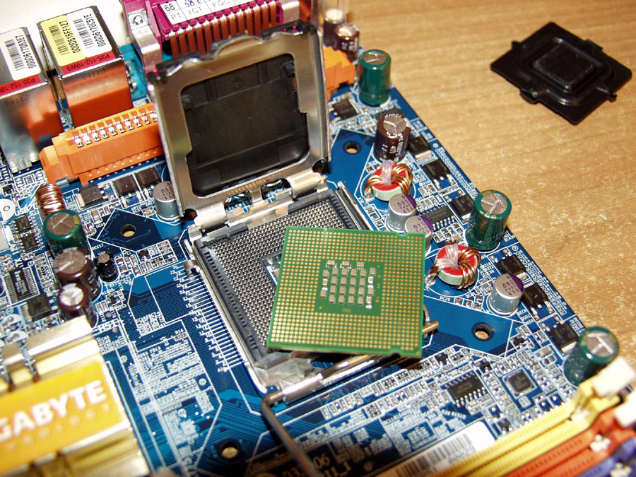 Как известно, на новых процессорах LGA775 ножки отсутствуют - вместо них контактные площадки. А ножки установлены непосредственно на процессорном сокете.