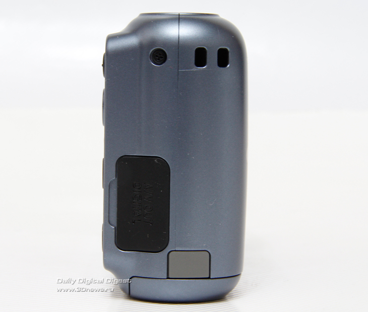 Левая боковая поверхность традиционно пустует, а справа находится лишь разъём miniUSB, предназначенный для подключения USB/AV-кабеля, а также ушко крепёжного шнурка.