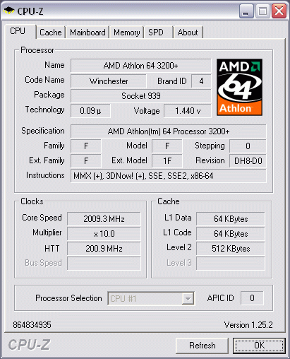 ![]() Диапазон изменения от 4 до 10 (максимум для модели 3200+) с шагом 0.5. Впрочем, полезность данной функции весьма сомнительна, поскольку все процессоры Athlon64 имеют заблокированный множитель в сторону увеличения. Следующий пункт - повышение напряжения на процессоре (Vcore) от 0.8V до 1.65V с шагом 0.0125V.