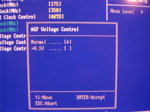 И, наконец, можно увеличить напряжение на шине AGP. Доступные значения 1.5V и 1.6V.