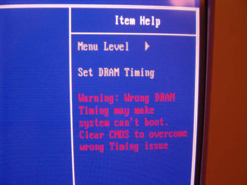 Грозное предупреждение при попытке изменения таймингов памяти :)