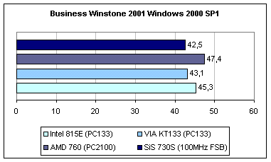 В этом тесте 730S примерно на 1% медленнее KT133, это гораздо меньше различия в результатах тестирования в SYSMark 2000.