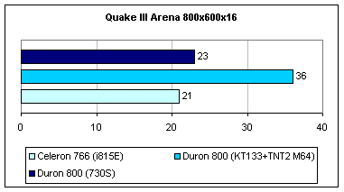 В низком разрешении разница в производительности плат на KT133 и 730S еще больше, чем в Quake III Arena - до 20%.